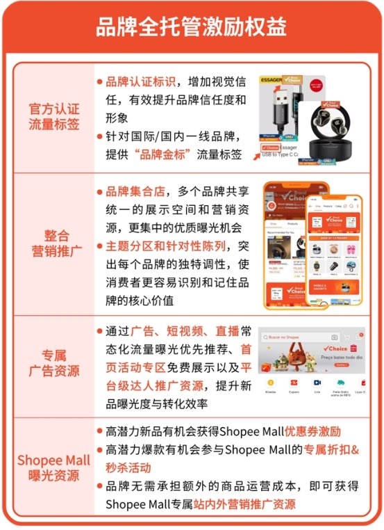 若您是国际/国内知名品牌,或是拥有成熟国内电商运营经验的精品品牌,正寻求跨境业务新突破、拓展全球市场版图,Shopee品牌全托管,将成为您开拓东南亚及拉美新兴市场的战略支点,更是加速品牌全球化布局的核心引擎。